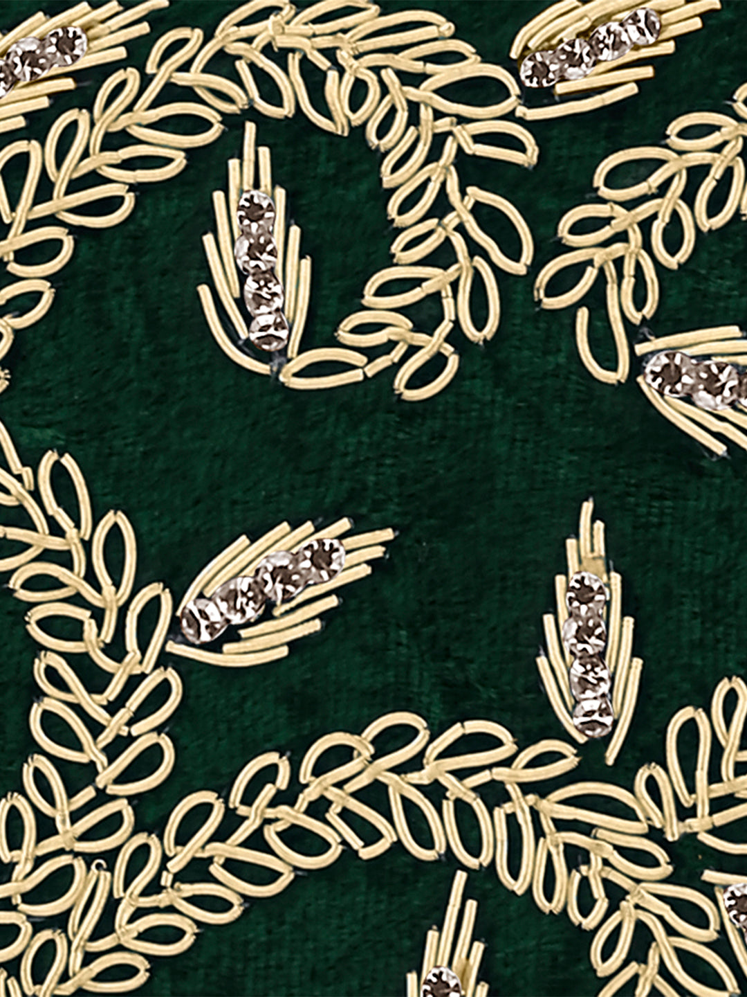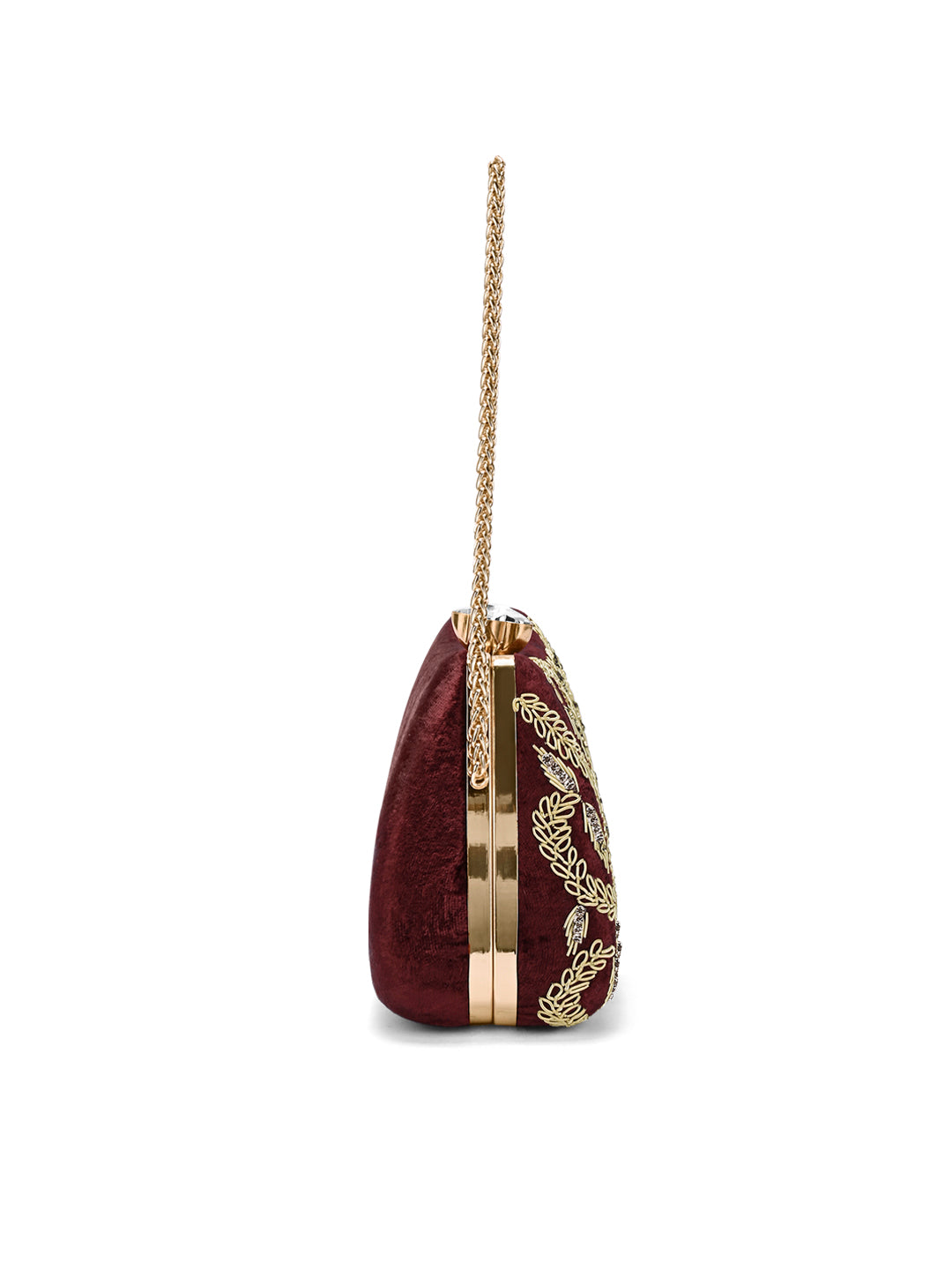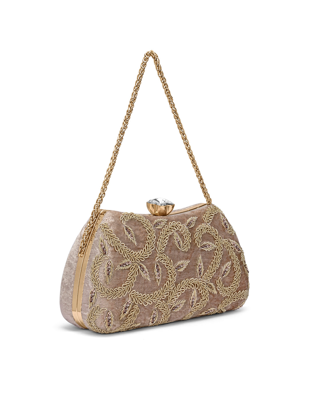 • The satin feel of the bag adds a richness and elegance to any outfit. The gold plated handles and embellished stone flower details on the front add a good balance to subtly make the bag more fancy for functions or festivals.