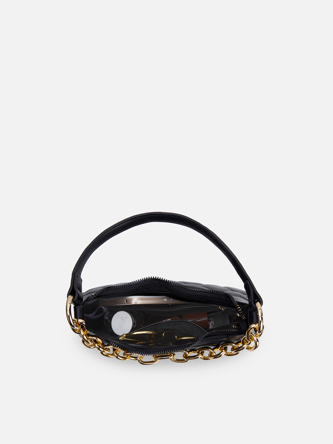 - Special Features: wrist and shoulder carry options, spacious compartment, Chain embellishment, Debossed , Fluffy texture.