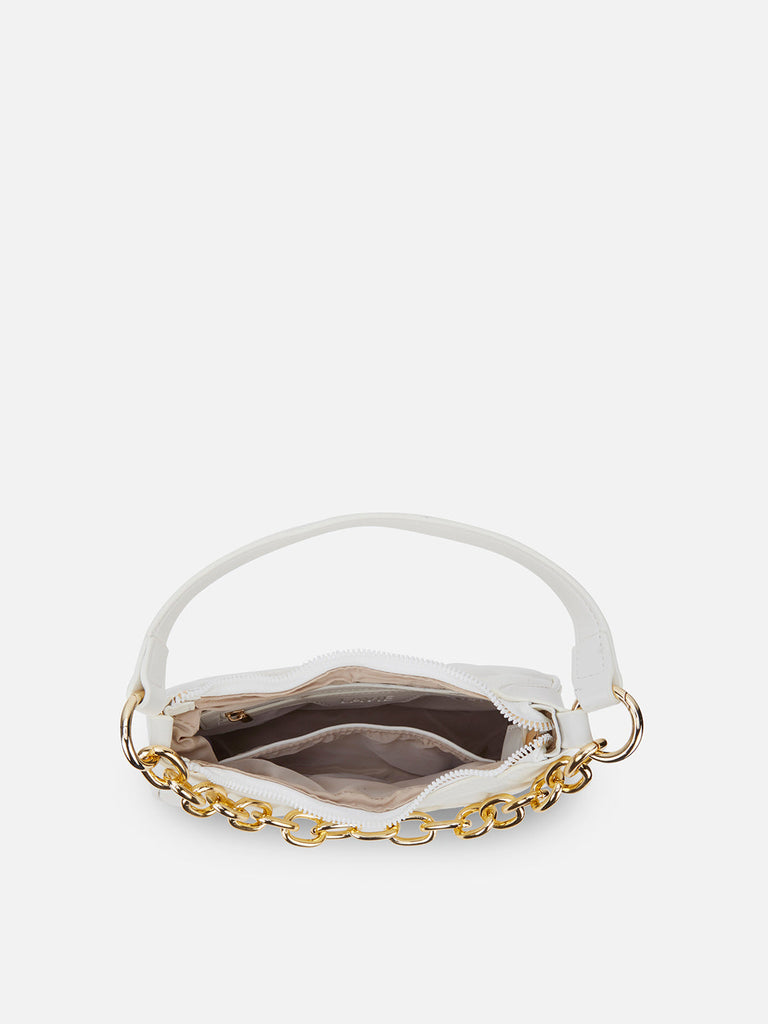 - Special Features: wrist and shoulder carry options, spacious compartment, Chain embellishment, Debossed , Fluffy texture.