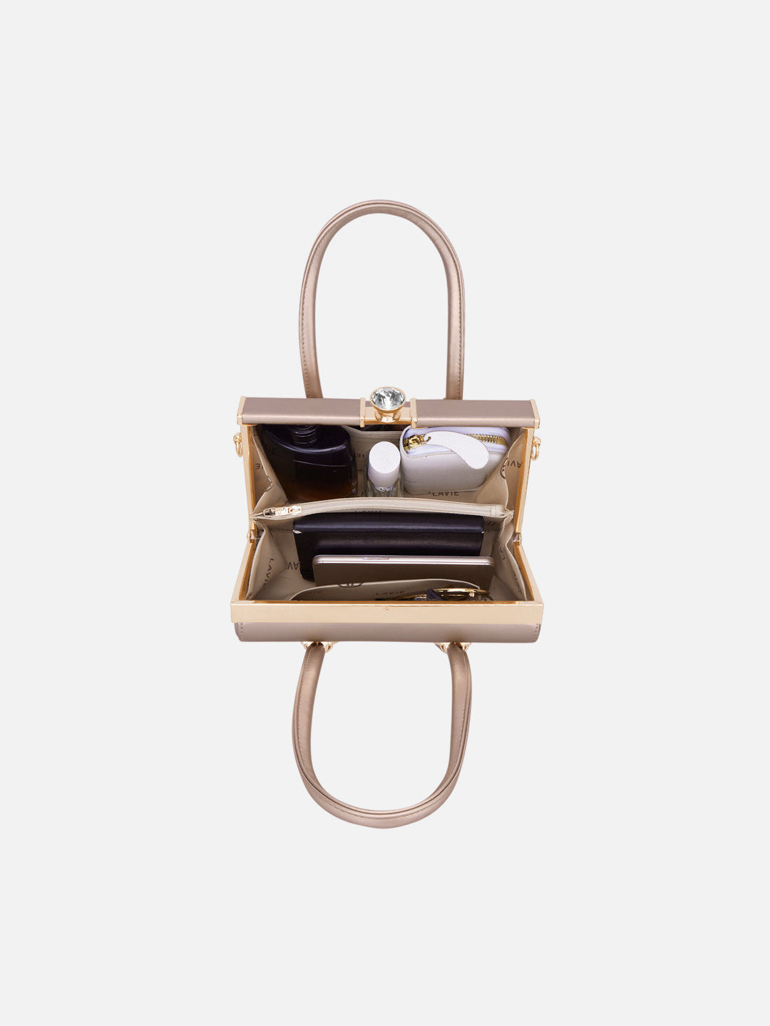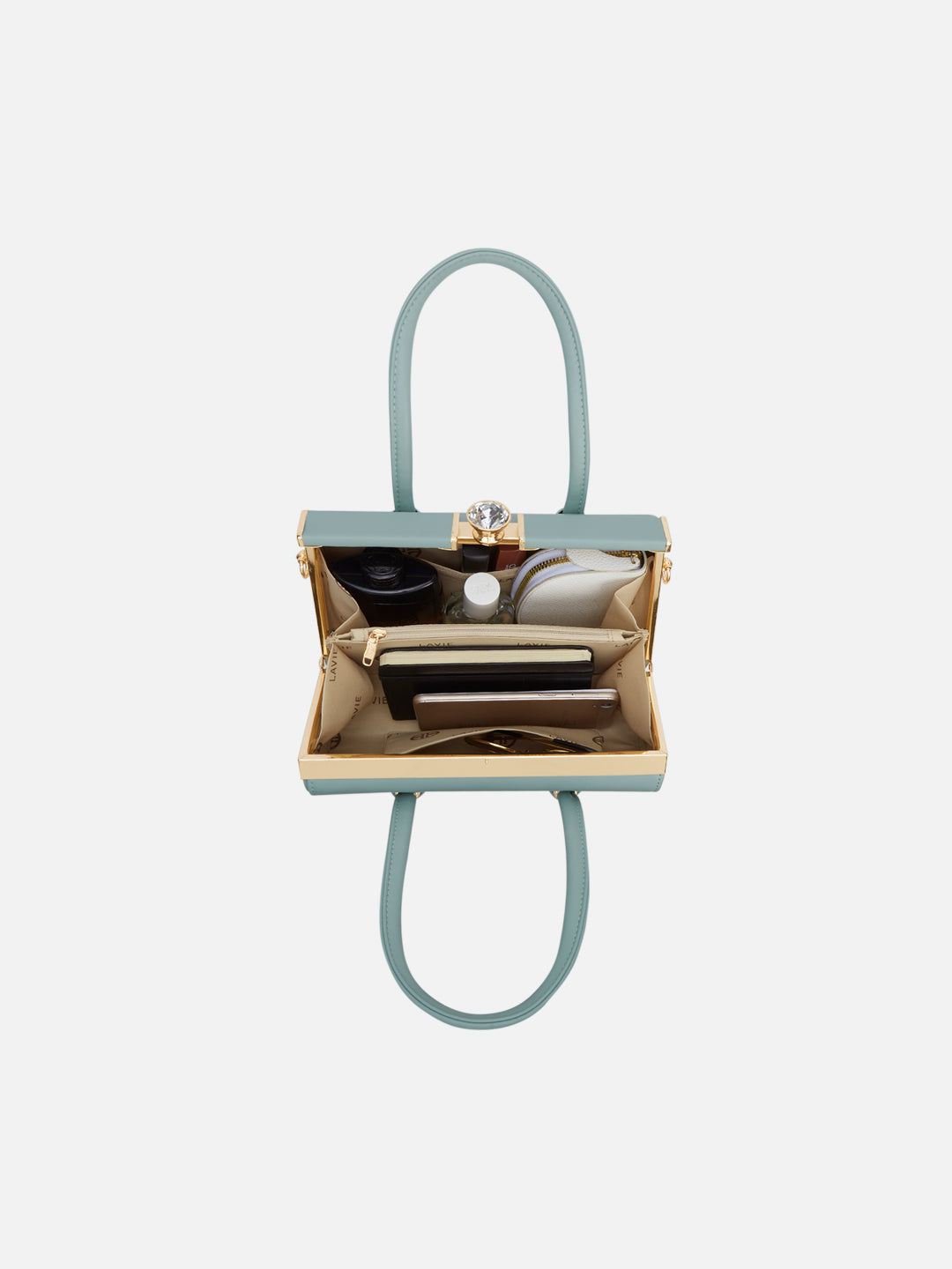- Special Features: Plain texture, Embellished diamond stud closure, Spacious Compartment, Secure lock, Sturdy structure.