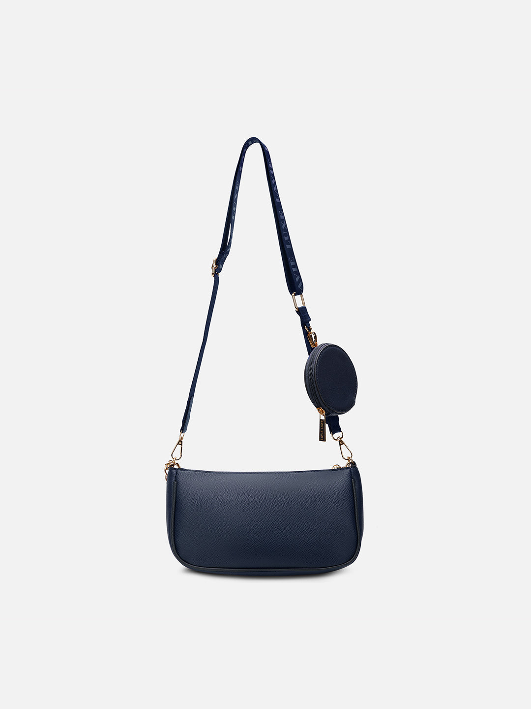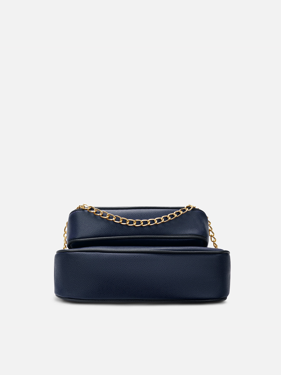- Crafted as a fusion of style and functionality, the Multi Pochette Slingbag is an innovative cross-body bag that seamlessly combines a Hobo sling, a Mini Hobo Pochette, and a Round Coin Purse, all adorned with an embellished chain.