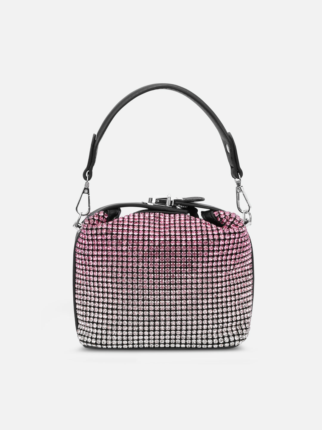 - Make every entrance unforgettable with this crystal-studded dual-handle bag.
