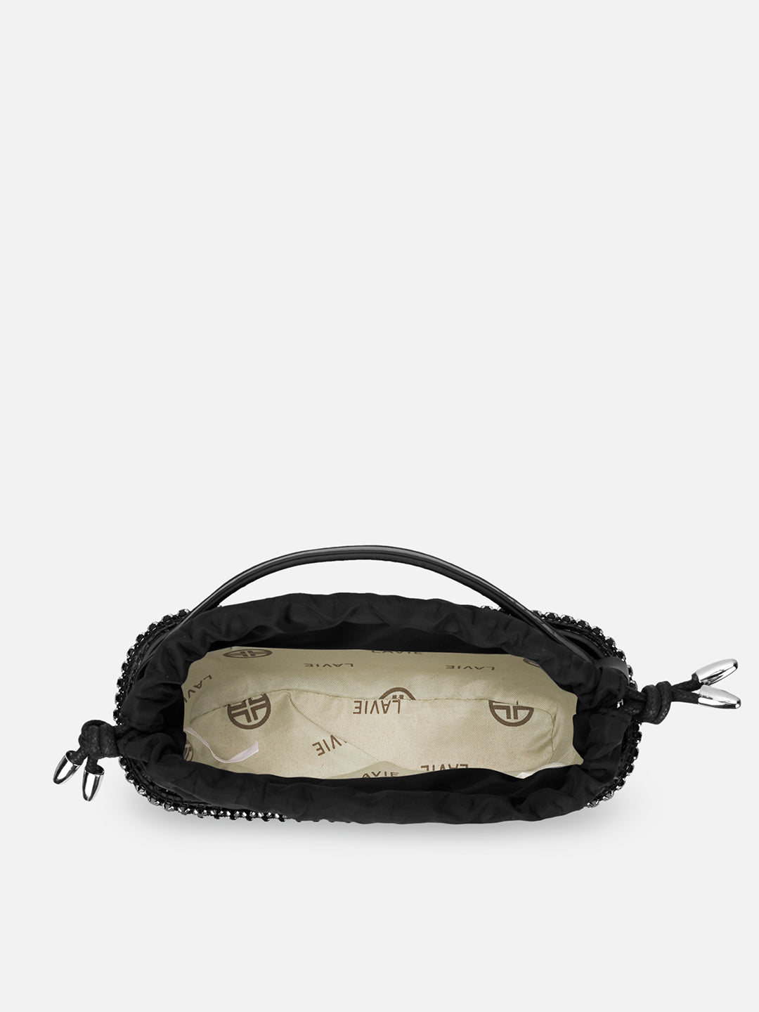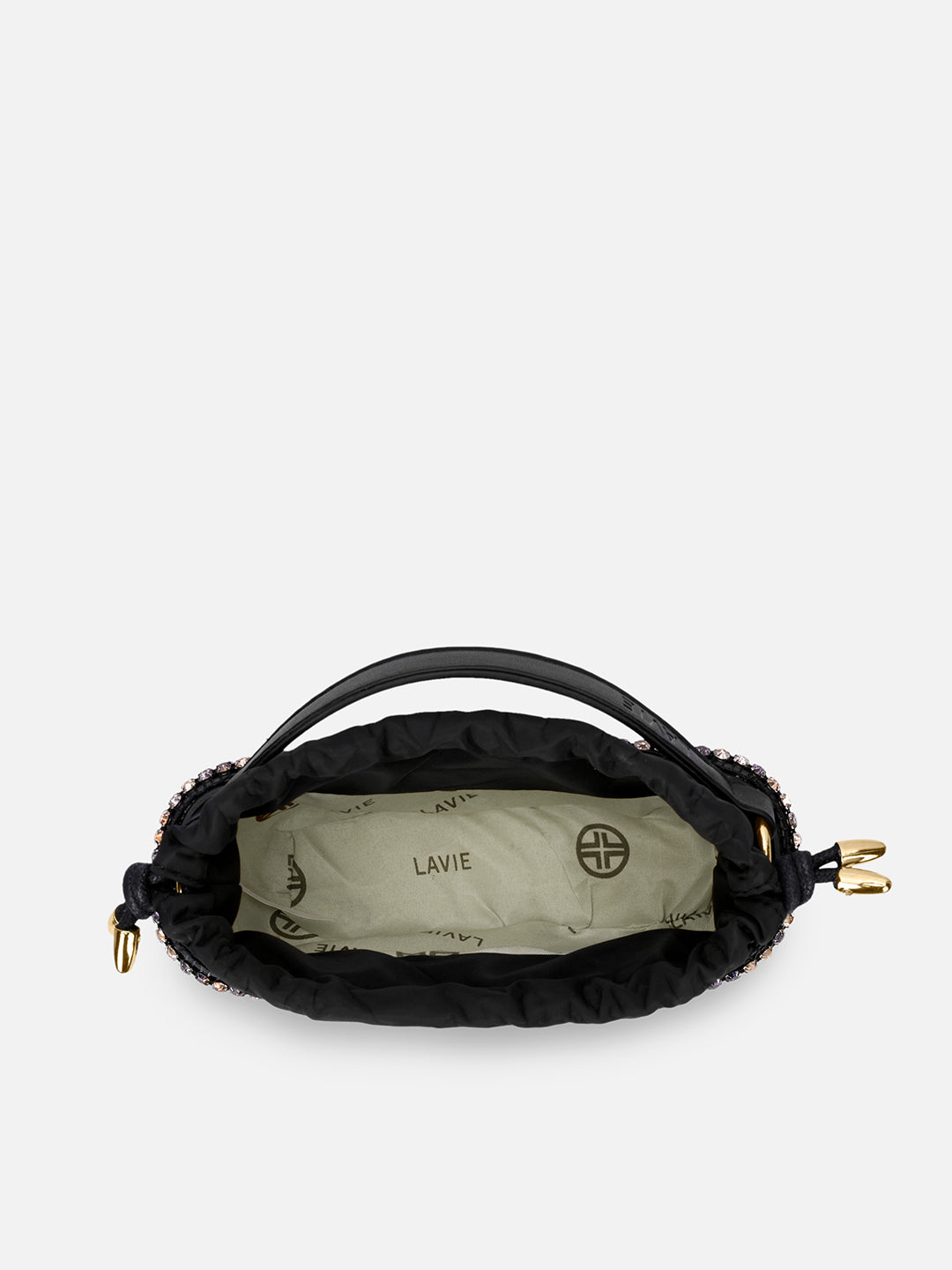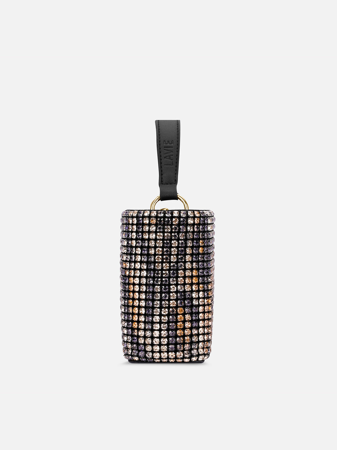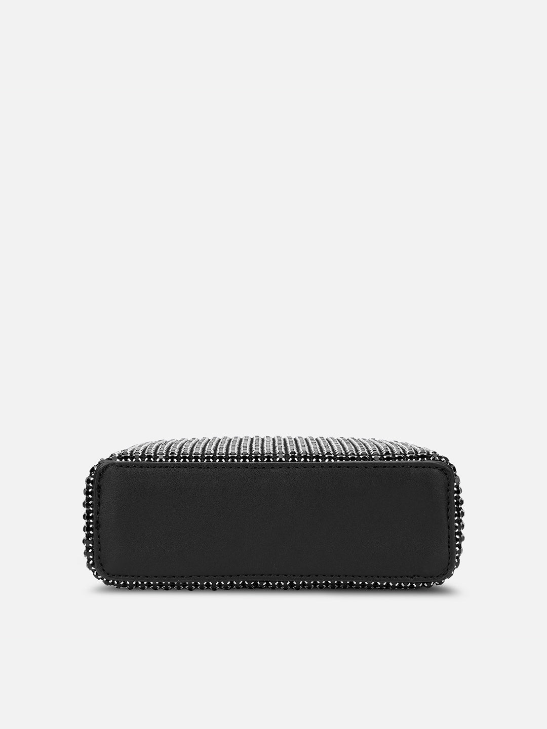 - Shine bright at every celebration with this crystal-studded bucket bag.