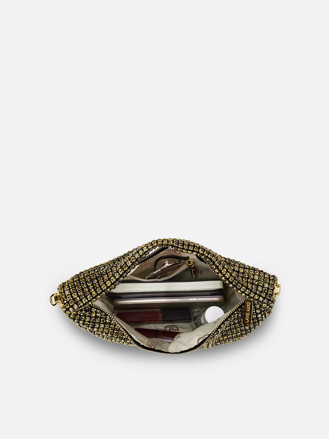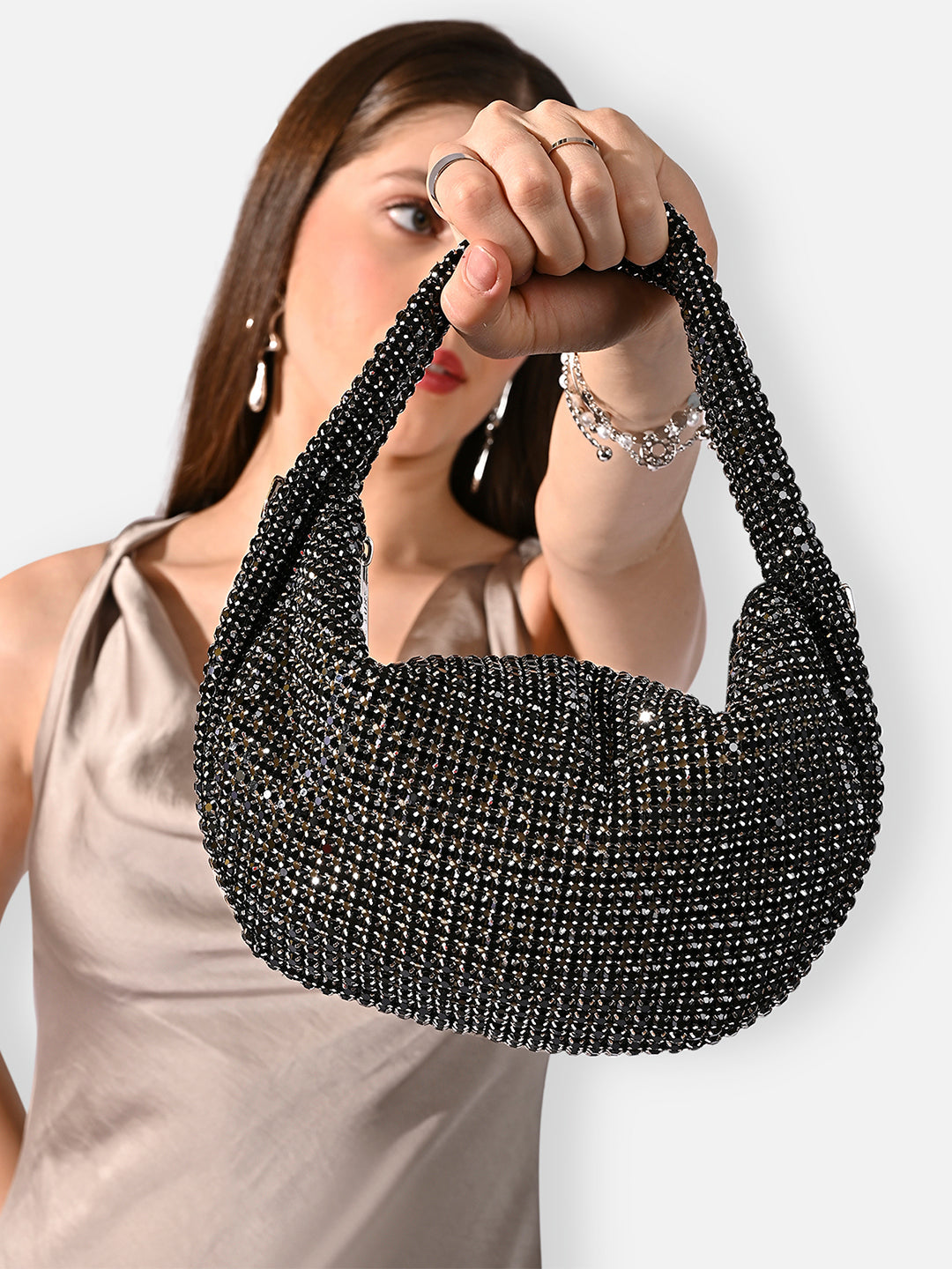 • Turn heads with this glamorous hobo bag, sparkling with delicate crystal embellishments.