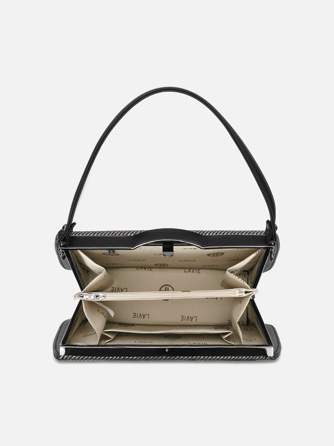 - Keep your belongings organized and easily accessible with multiple compartments and pockets inside the framed handbag.