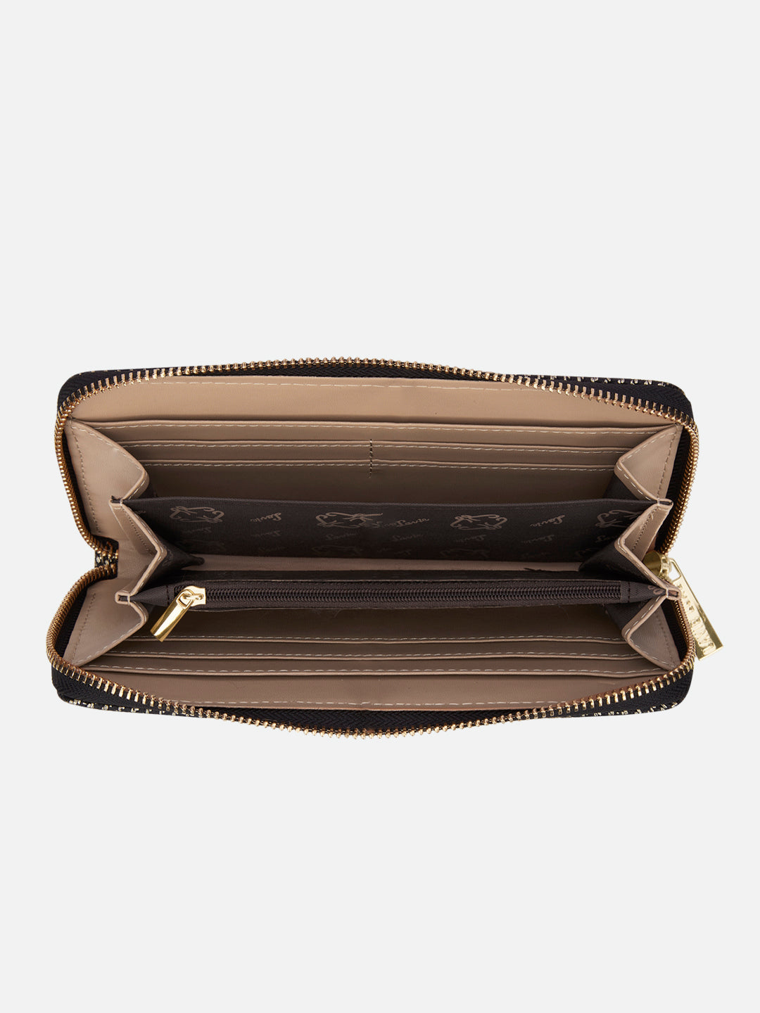 - It has four card holders, three cash compartments, and a metallic zip closure, which ensures that your credit cards, ID card, bills, cell phone, and other important belongings are securely stored and easily accessible.