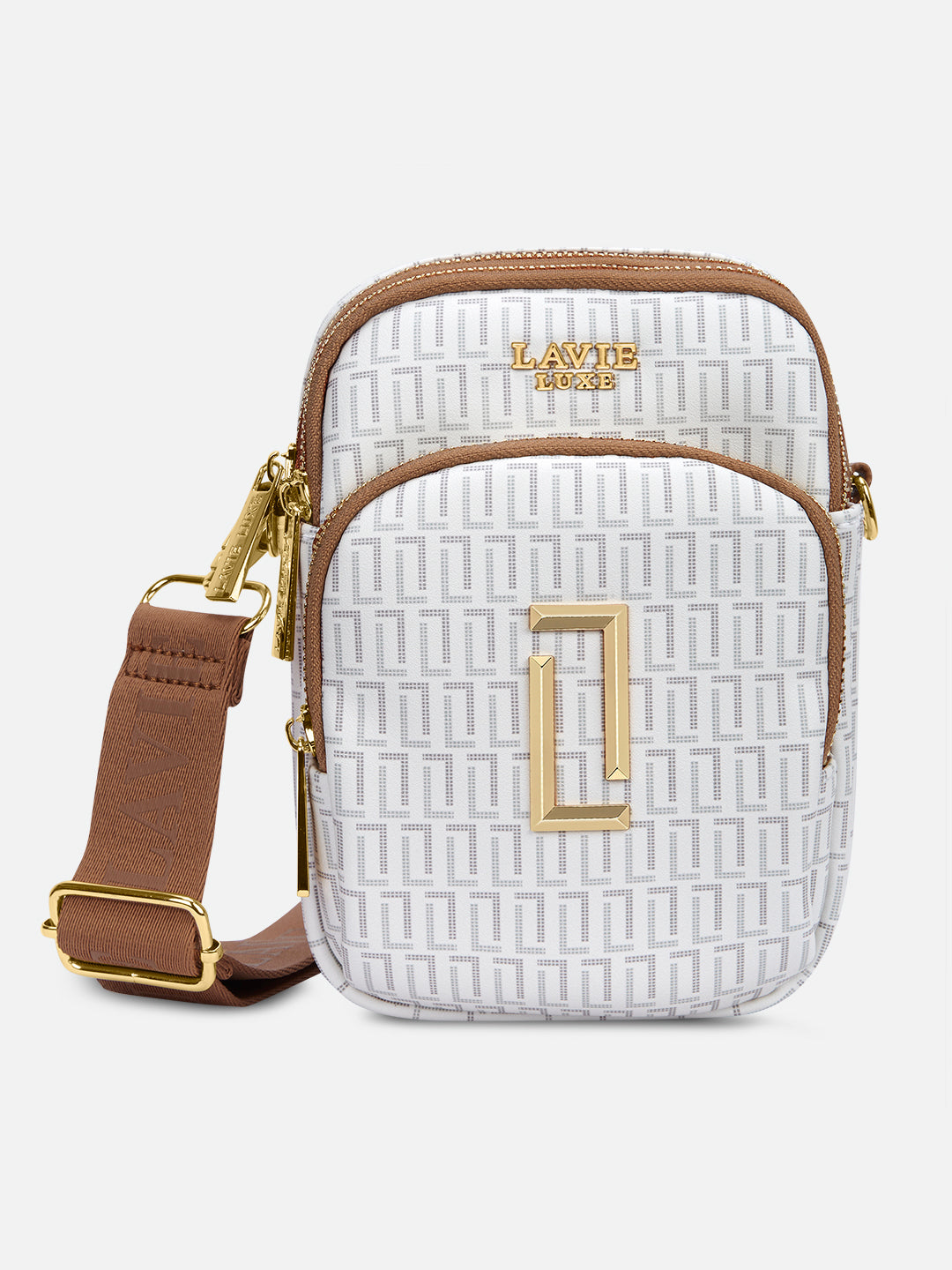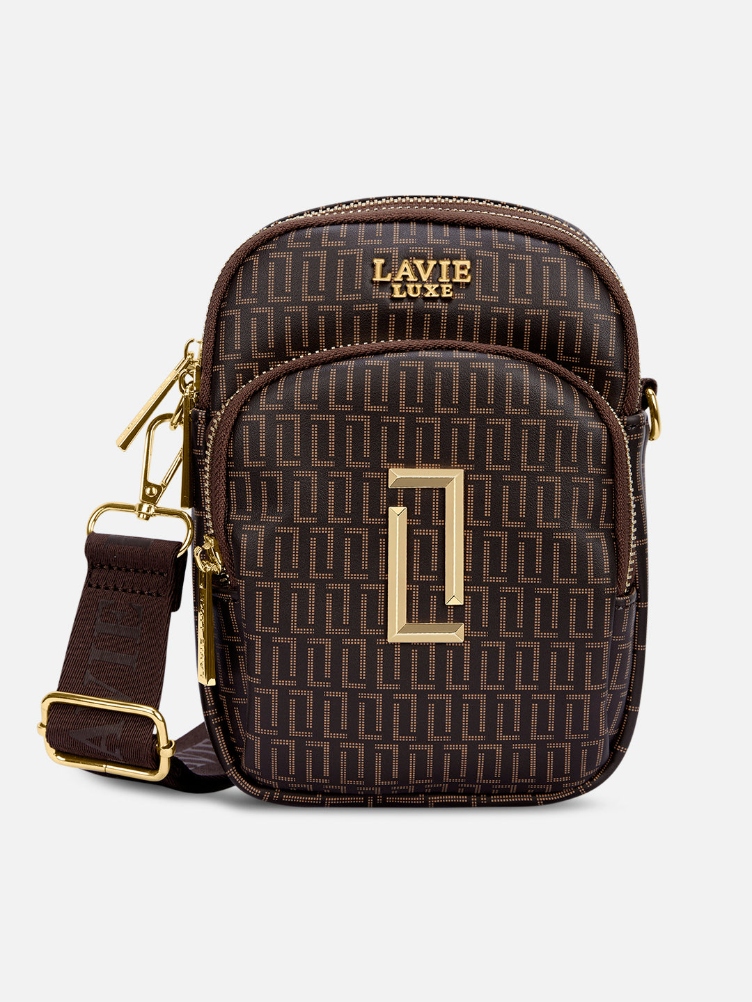 - This 3-compartment sling bag offers a minimalist yet stylish look with our branded monogram colors, perfect for those who want to keep their essentials organized.