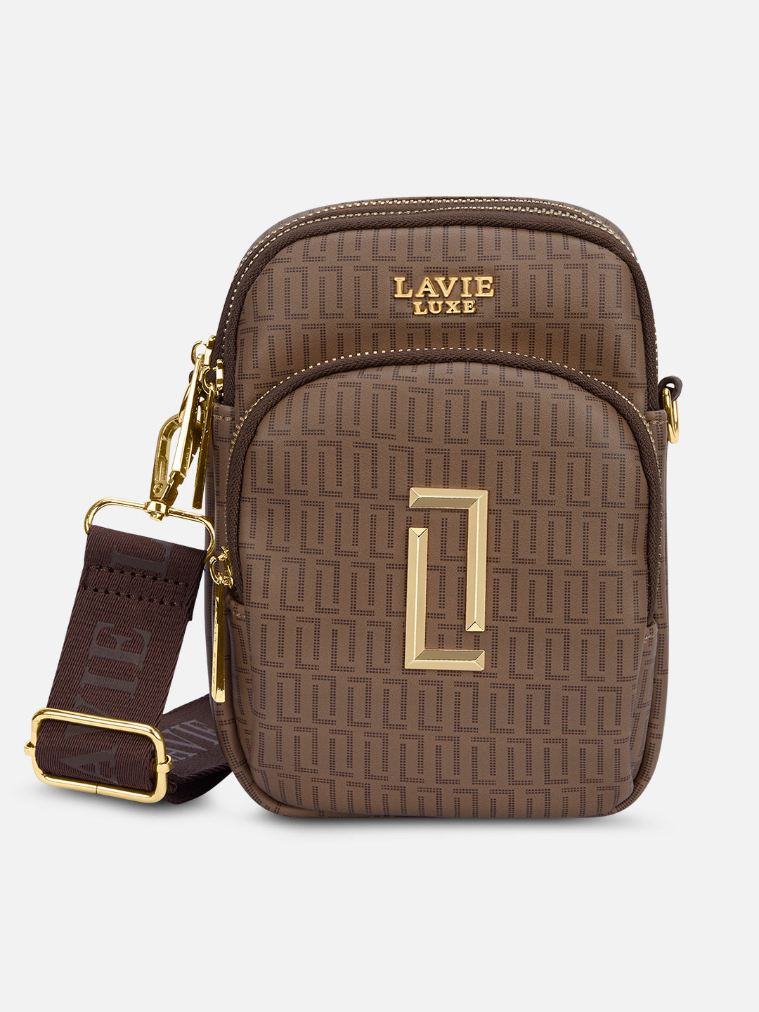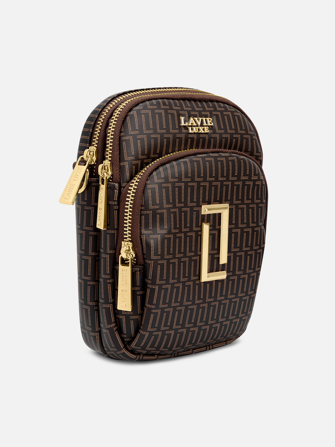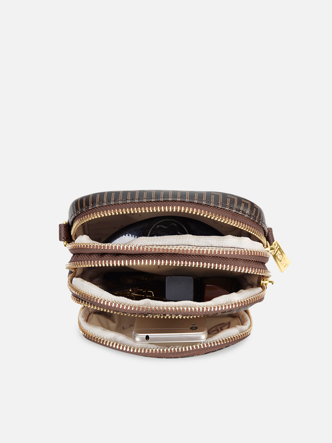 - This 3-compartment sling bag offers a minimalist yet stylish look with our branded monogram colors, perfect for those who want to keep their essentials organized.