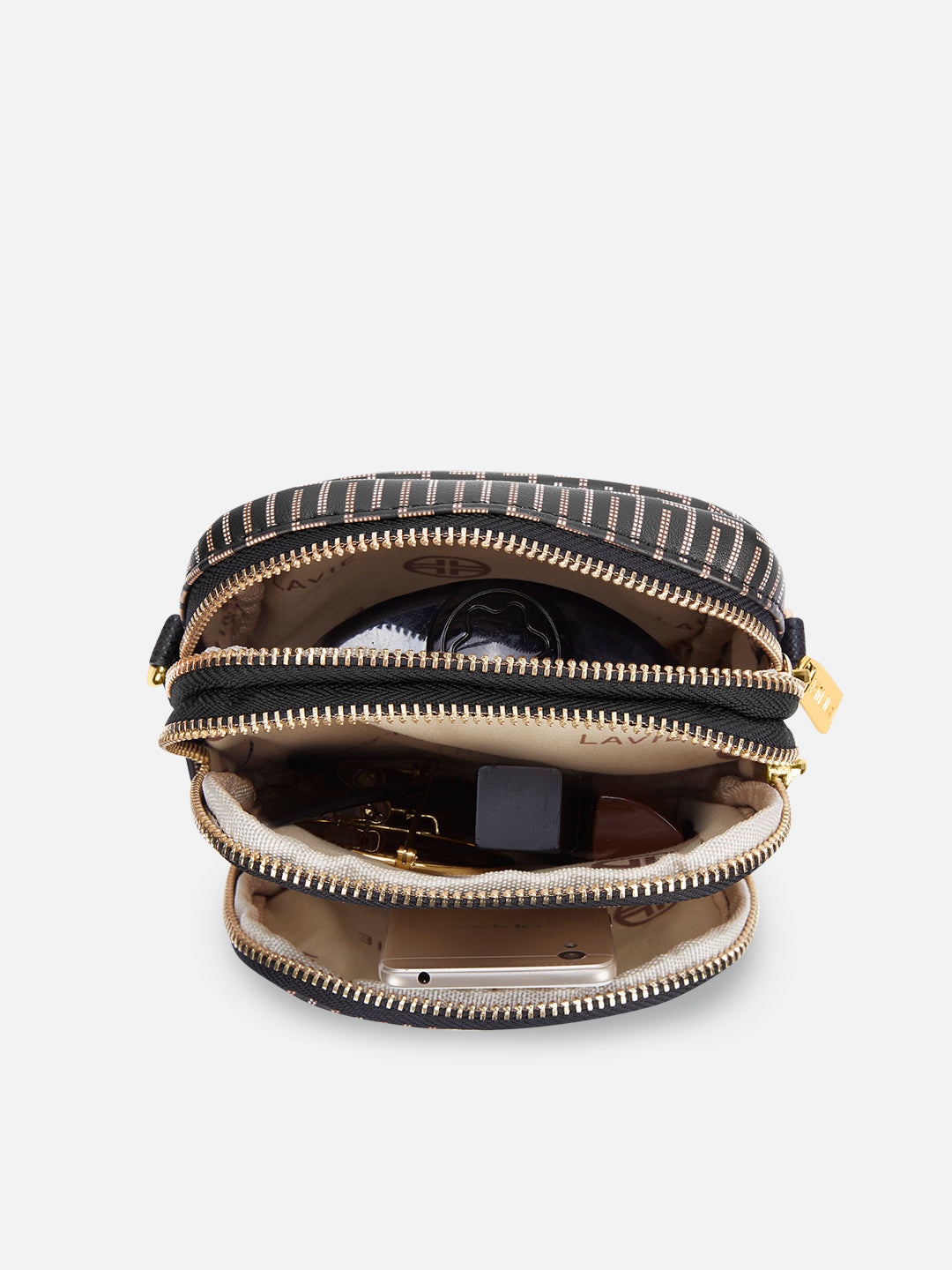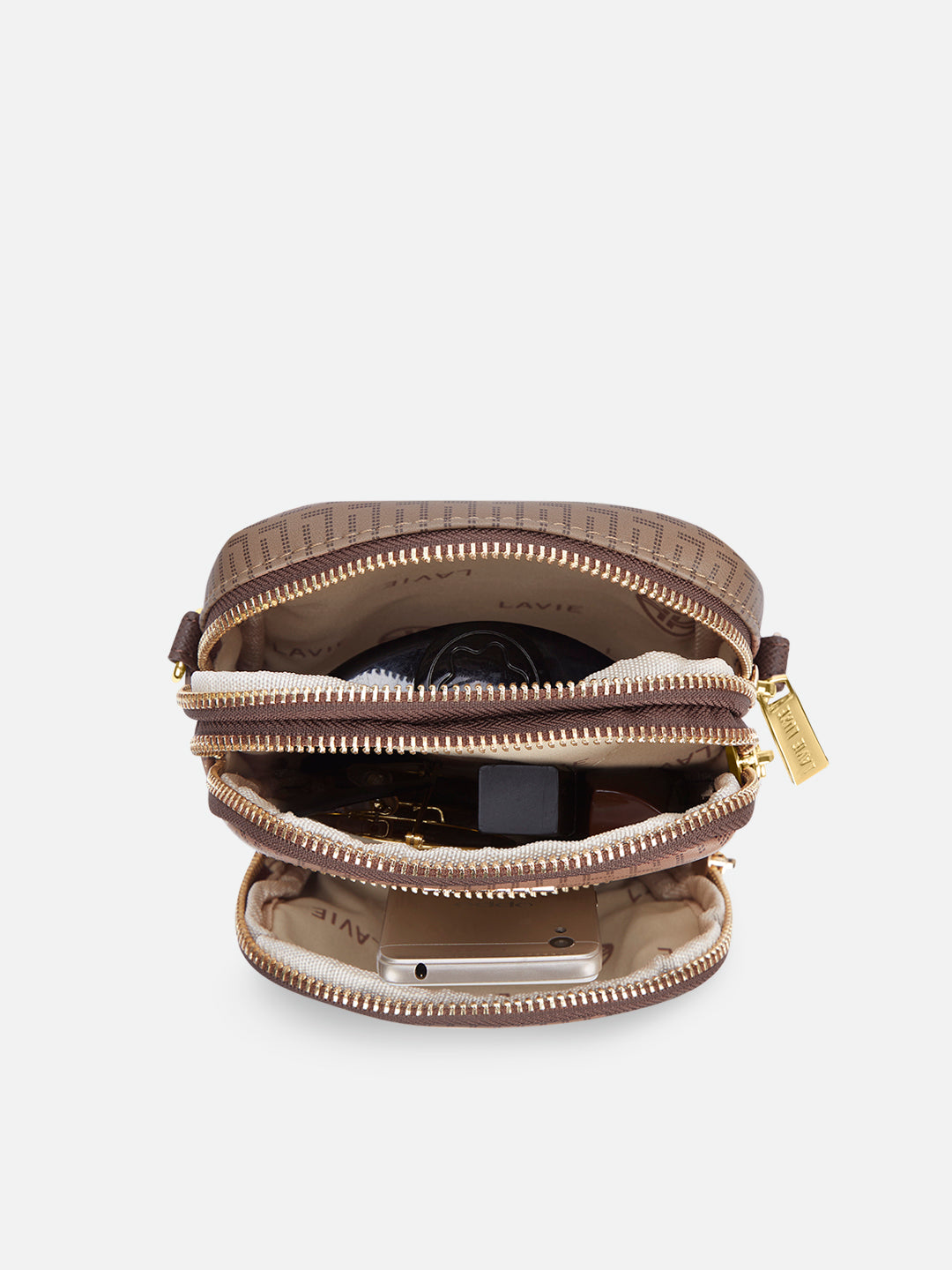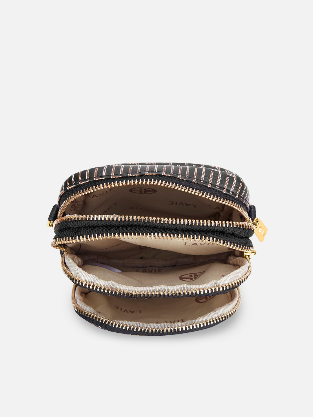 - This 3-compartment sling bag offers a minimalist yet stylish look with our branded monogram colors, perfect for those who want to keep their essentials organized.