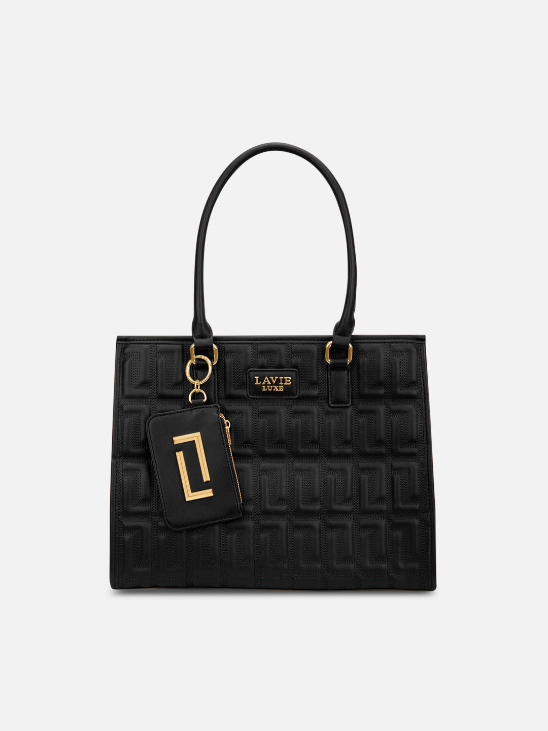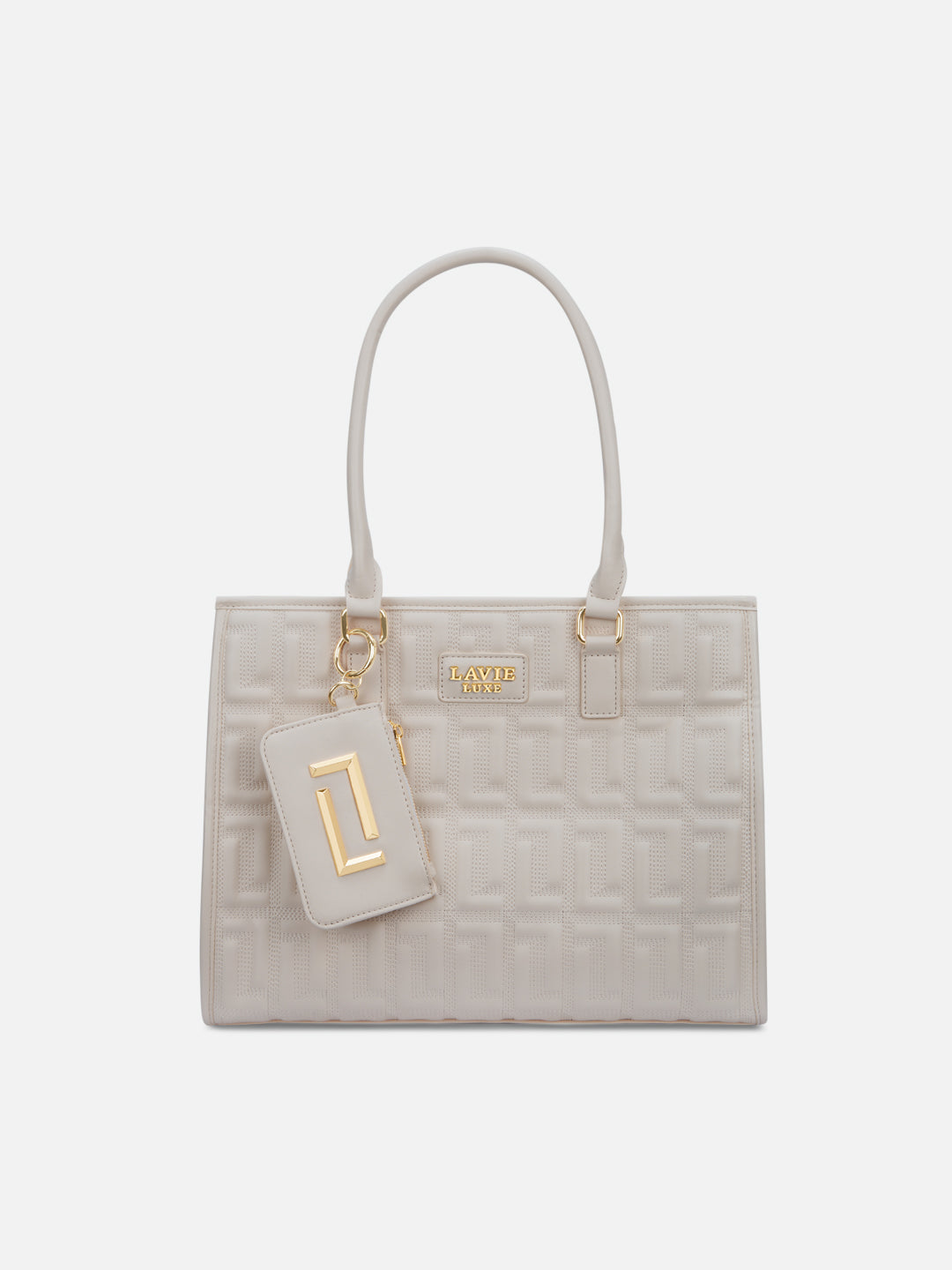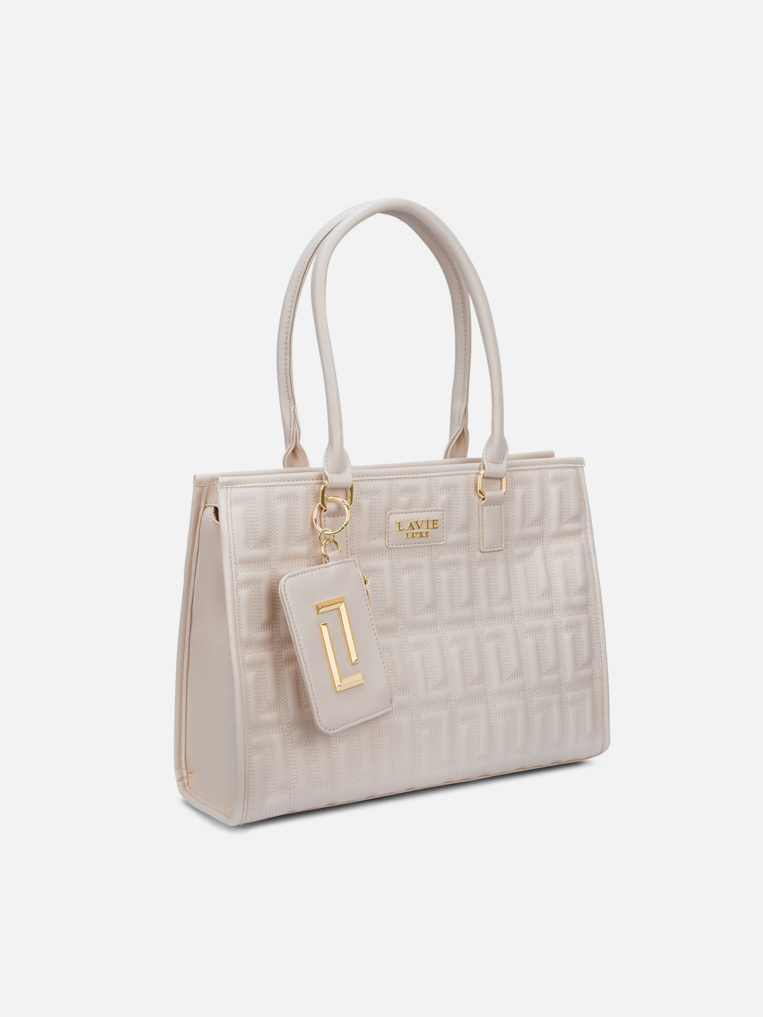 • This satchel from Lavie Luxe is the epitome of a stylish work bag, featuring a sleek design and a premium texture with a LL quilted pattern for a luxurious feel.