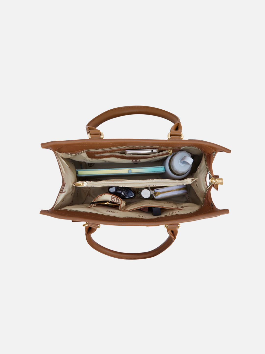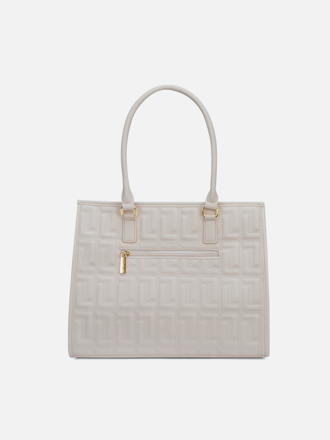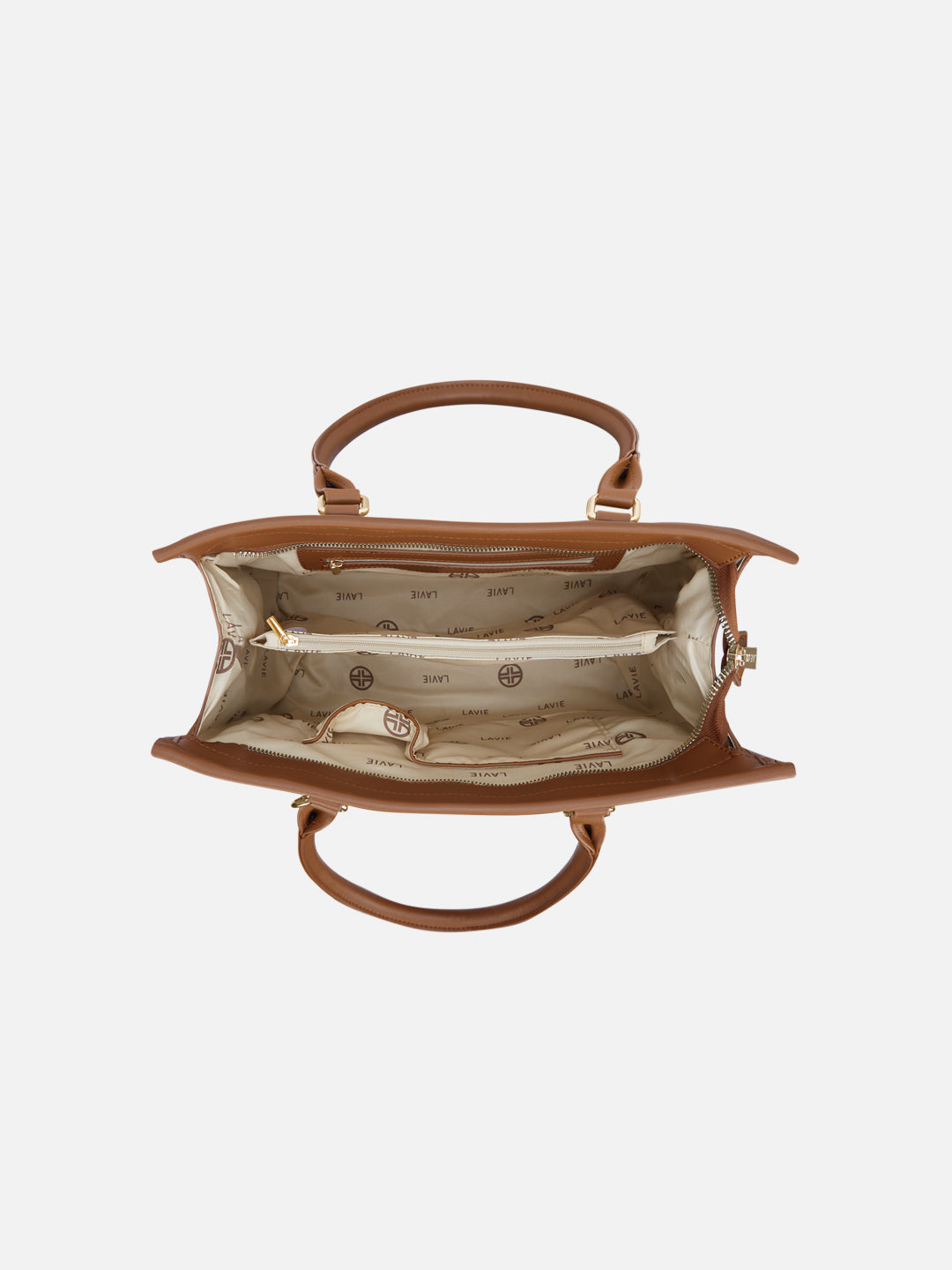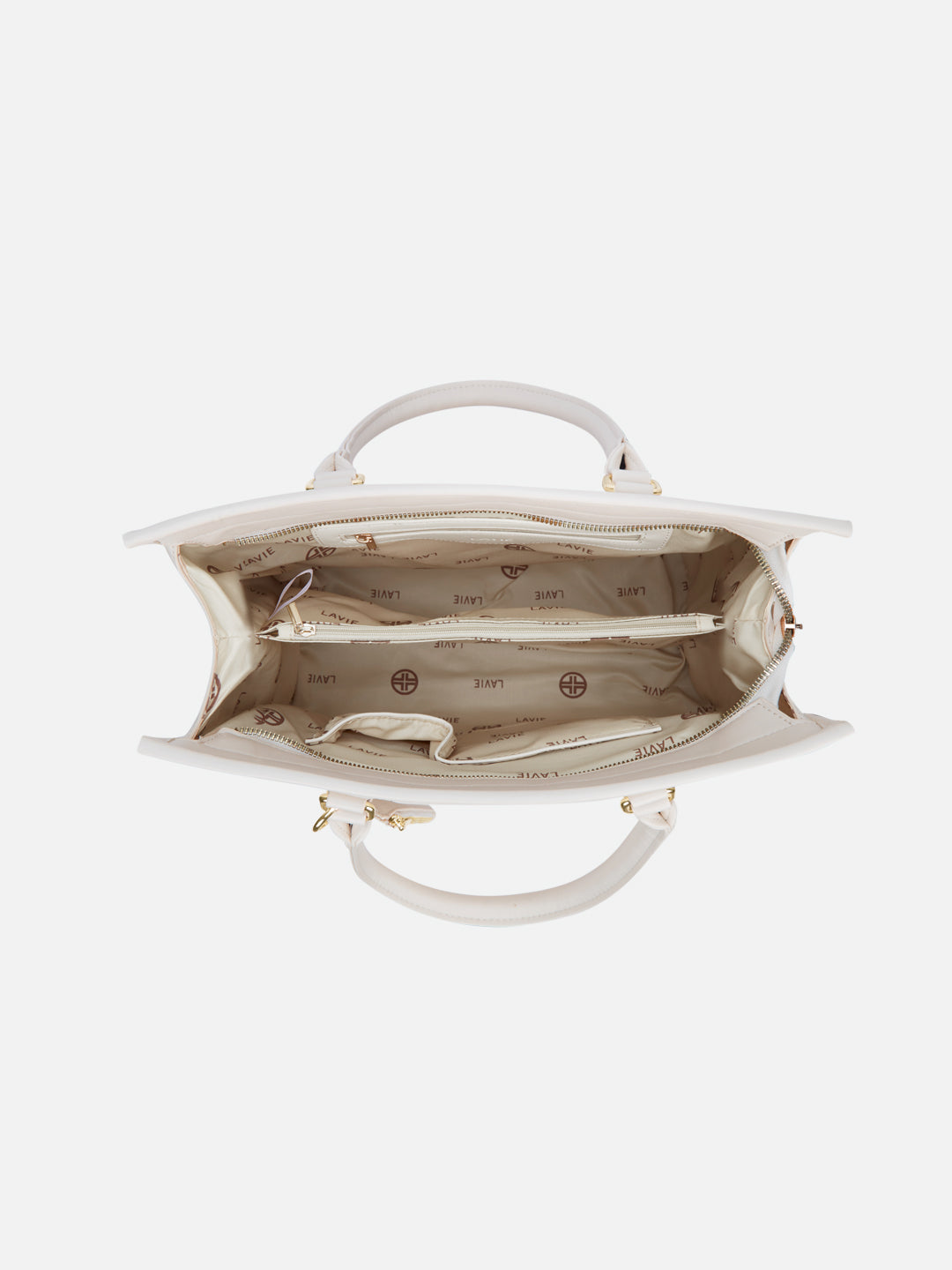 • This satchel from Lavie Luxe is the epitome of a stylish work bag, featuring a sleek design and a premium texture with a LL quilted pattern for a luxurious feel.