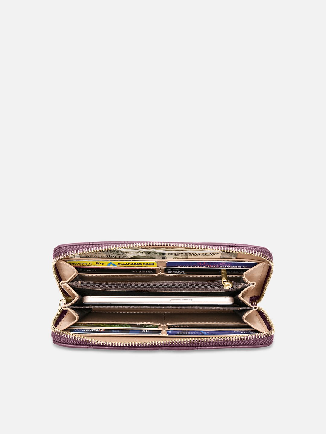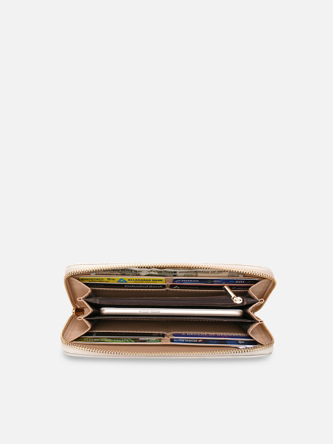 • Quina25 Zip-Around Wallet is a stunning accessory crafted from soft PU material & adorned with a distinctive quilted pattern.