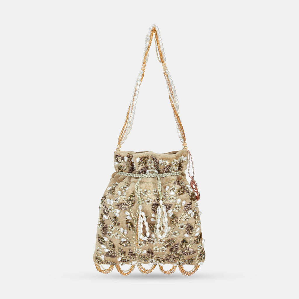 - This stylish potli ensures that you carry all your essentials and step out in style. It has a drawstring closure to keep your all valuables safe..