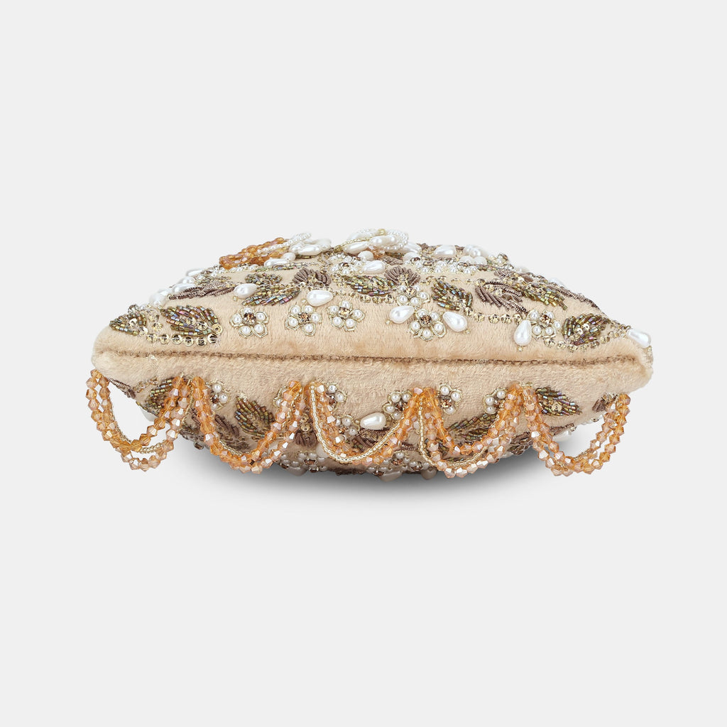 - This Potli bag has beautifully beaded dual handles for ease to carry..