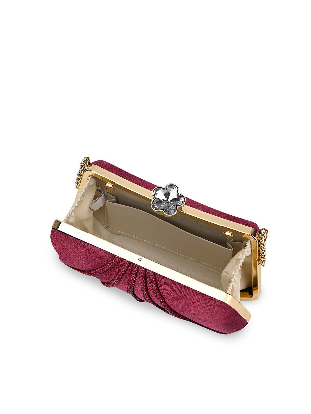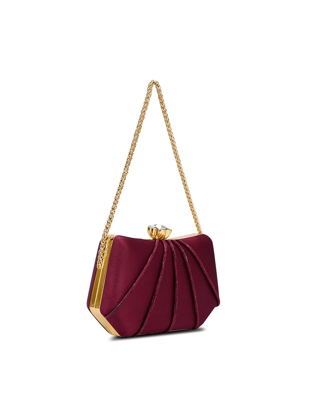 - The satin feel of the bag adds a richness and elegance to any outfit. The gold plated handles and details in the front add a good balance to subtly make the bag more fancy for functions or festivals.