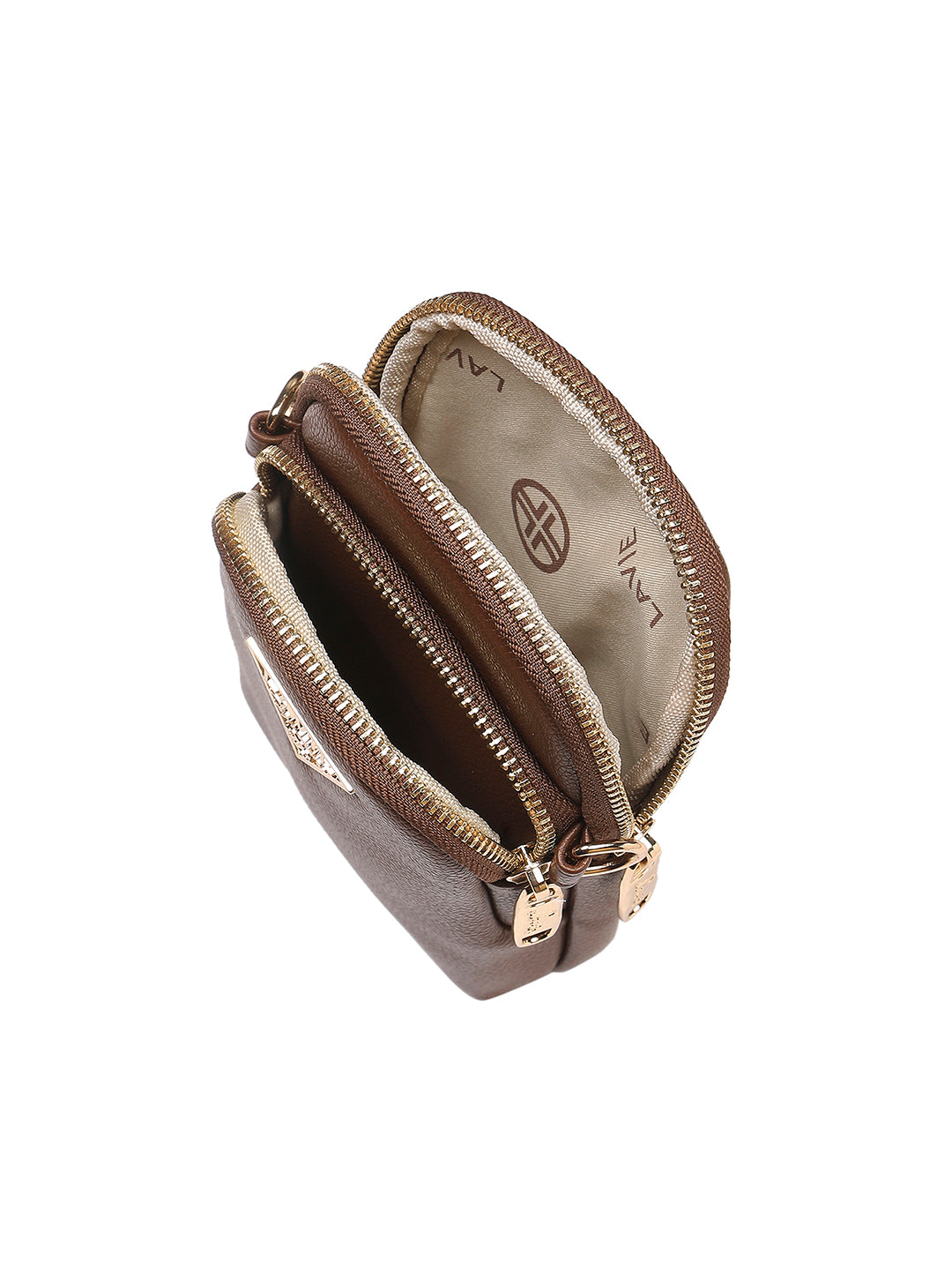 - The interior is lined with lavie signature loged fabric,it comes in 2 external compartment with metal zip closure.
