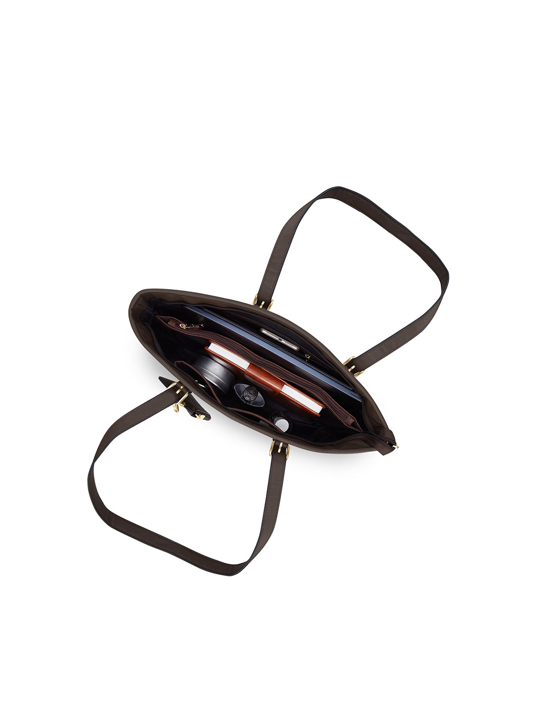 - The mono appleton large-Tote Bag's top zip fastening helps keep your belongings tidy. Within the spacious compartment of the bag, there's ample space to stash things like a phone, multi-purpose pockets, wallet, sunglasses, sanitizer, and hairbrush.