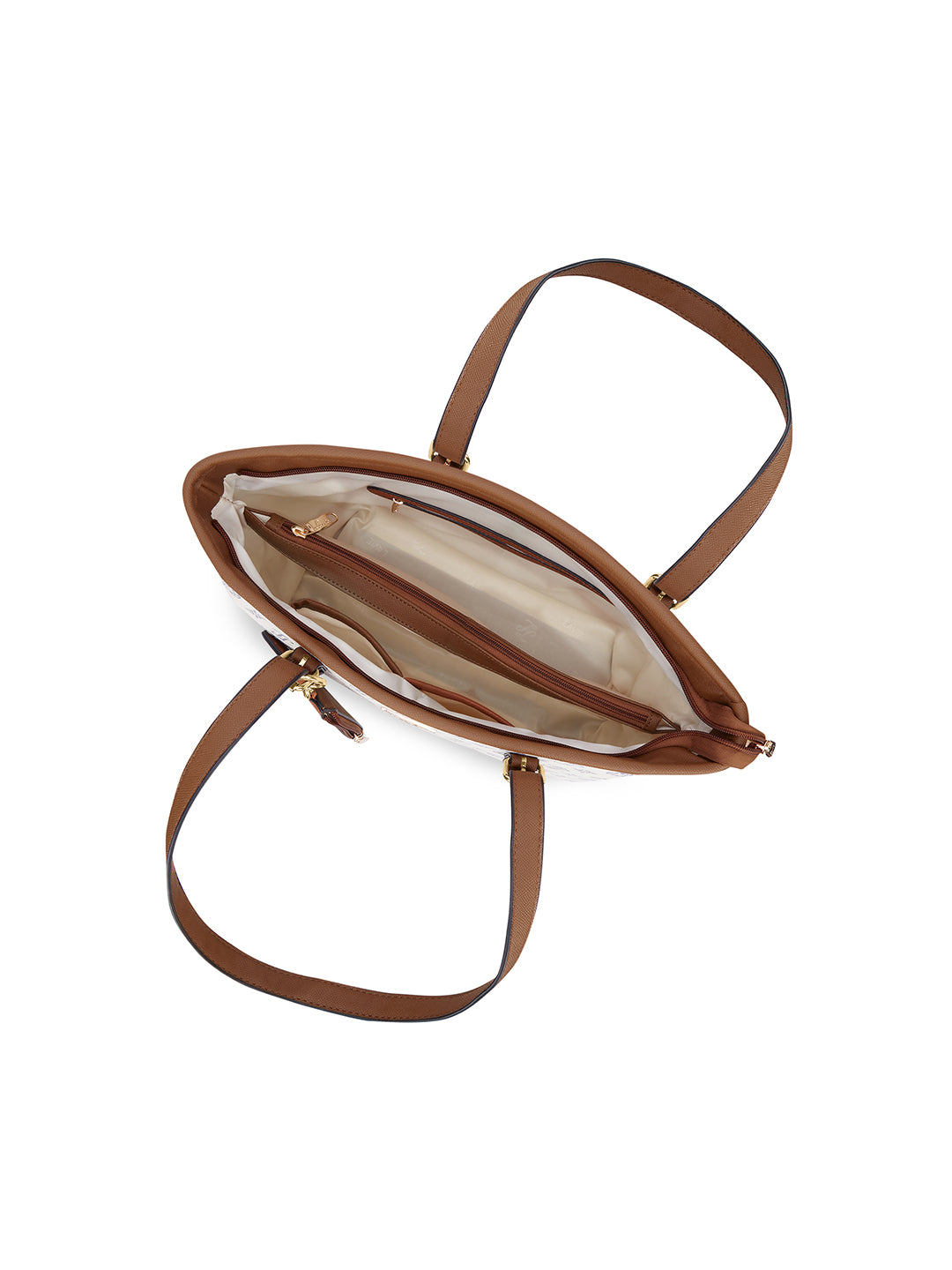 - Appleton large Tote Bag has a top zip closure to keep your essentials in place. The bag has spacious compartment with center divider pocket,inner side zip pocket & sturdy inner slip pocket; providing plenty space for keeping phone, portable charger, keys, hairbrush, wallet, sunglasses, sanitizer etc.