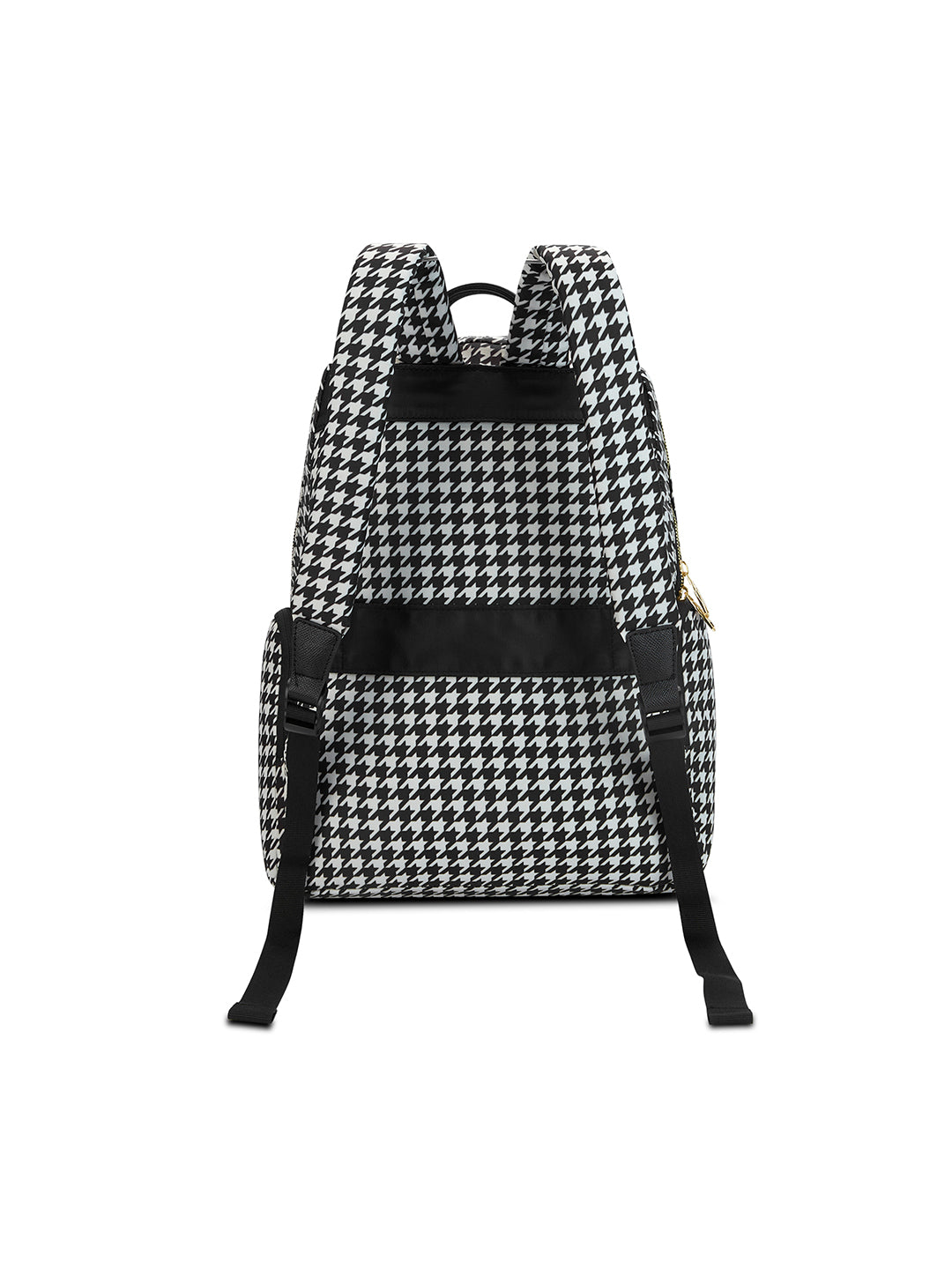 - Crafted with water resistant nylon fabric with synthetic leather trims. .