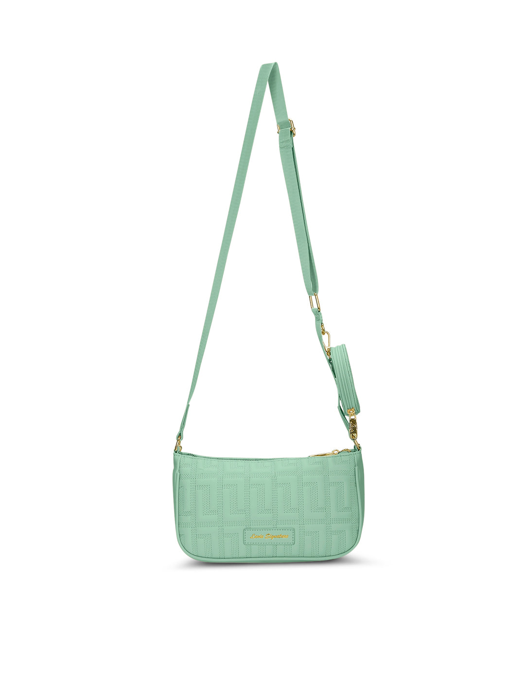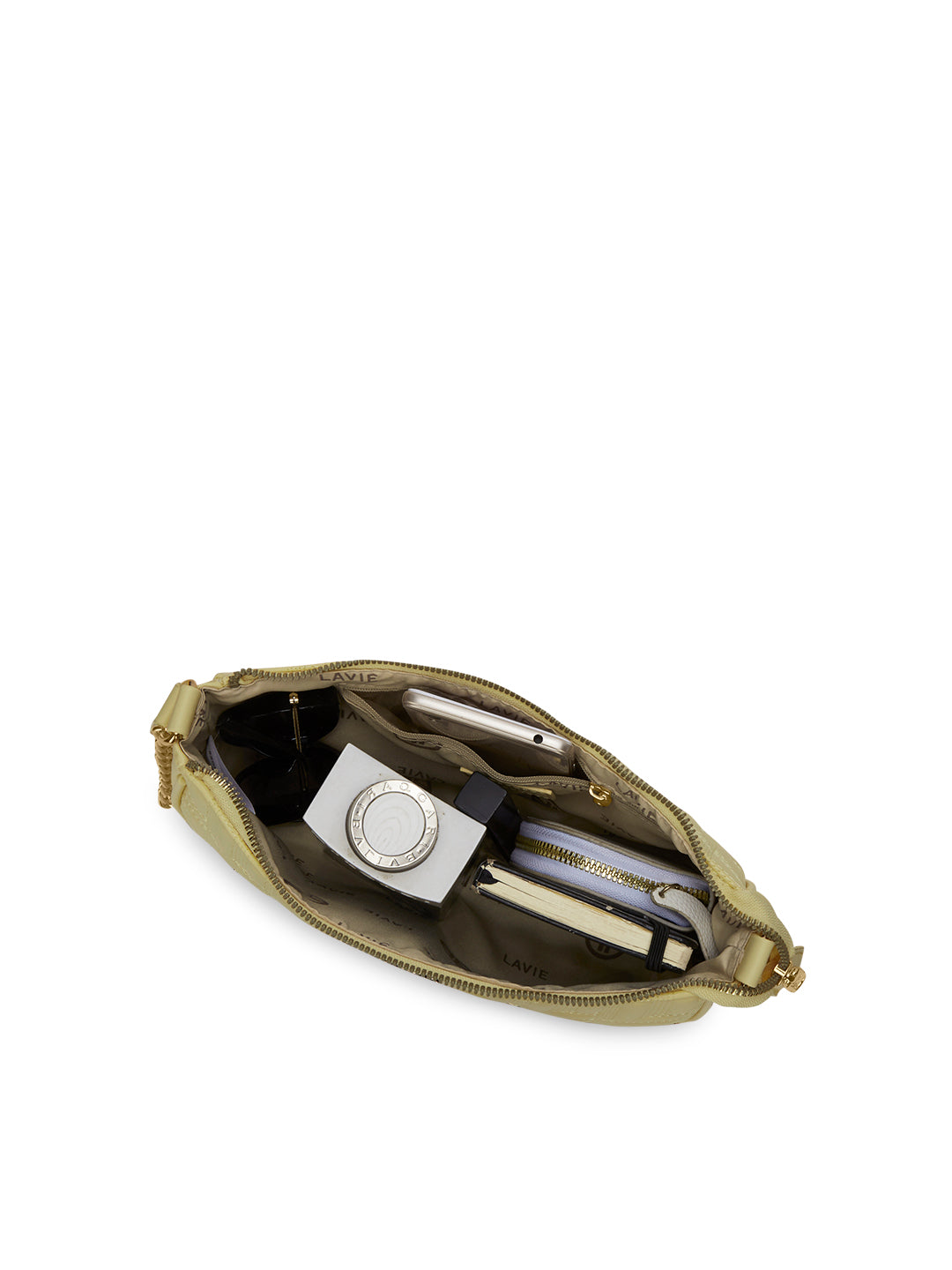 • Crafted as a fusion of style and functiolity, this Slingbag is an innovative cross-body bag that seamlessly combines a Hobo sling, a Mini Hobo Pochette, and a Round Coin Purse, all adorned with an embellished chain.