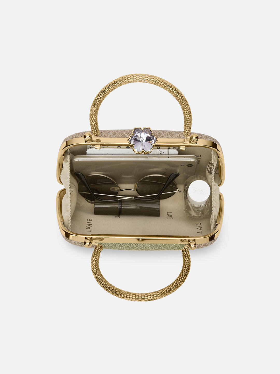 • The shimmer feel of the bag adds a richness and elegance to any outfit. The gold plated dual handles and premium fabric details on good balance to subtly make the bag more fancy for functions or festivals.