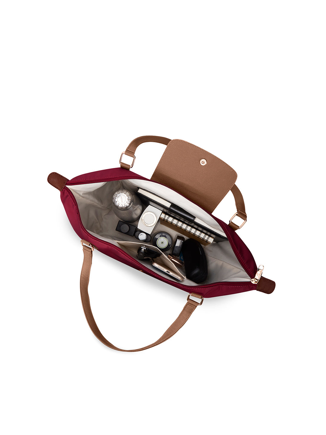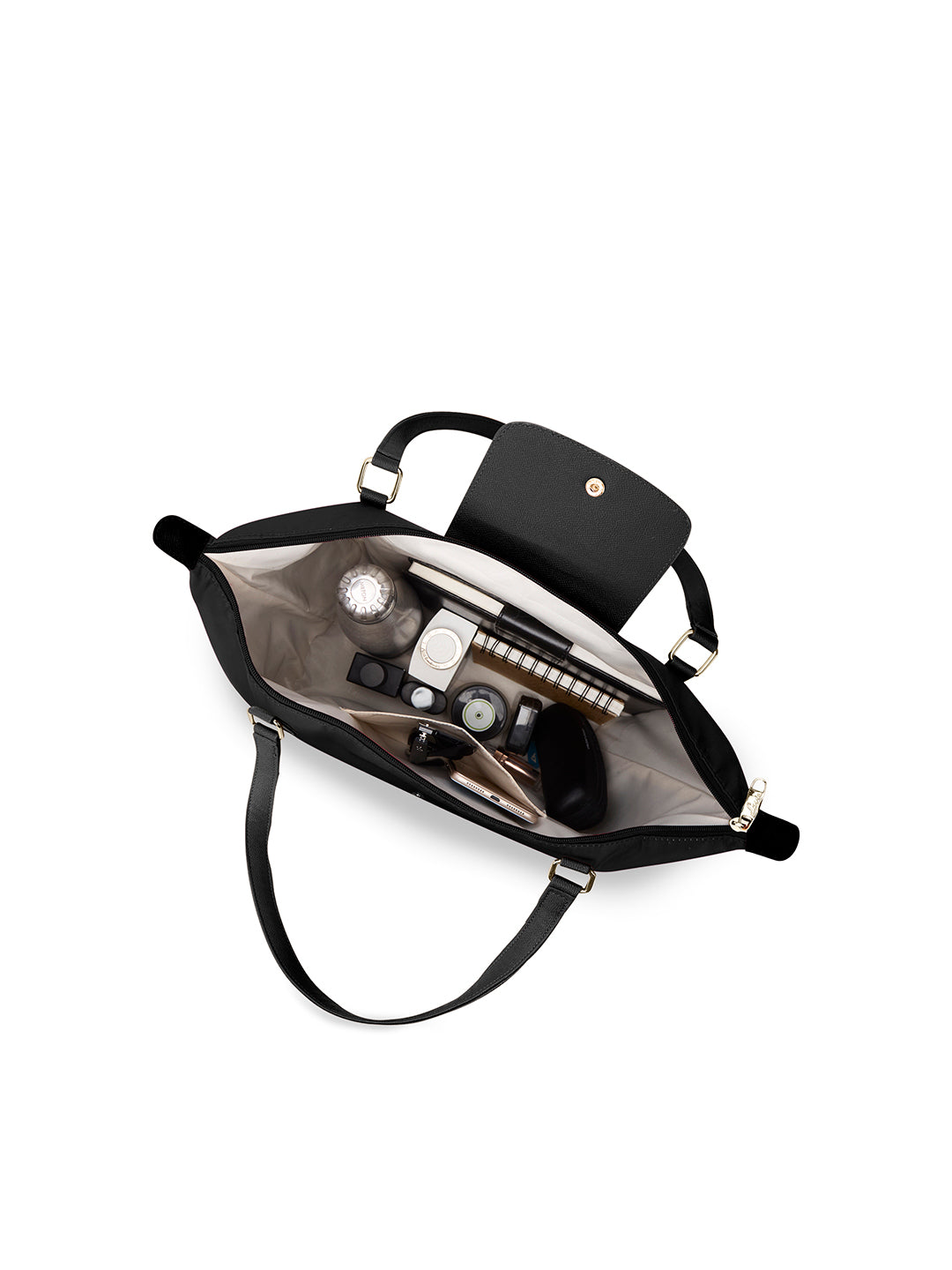 - while its zipper closure ensures the safety of all of your belongings. It can even be folded into the size of a paperback book.