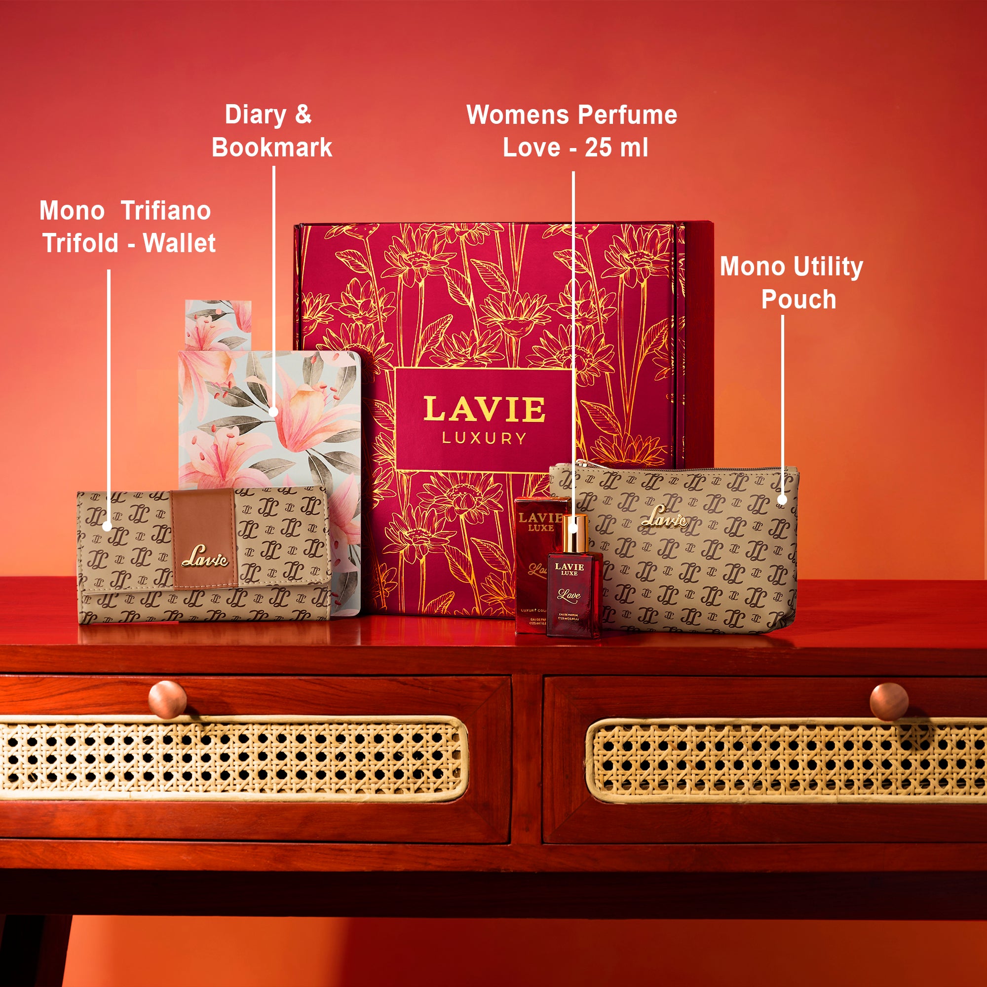 - Special Features : Floral-printed diary designed for notes, planning, or journaling with a feminine touch,Includes Lavie Luxe Perfume with a pleasant, long-lasting scent for everyday wear,A well-matched mix of fragrance and everyday essentials in a gift-ready box.